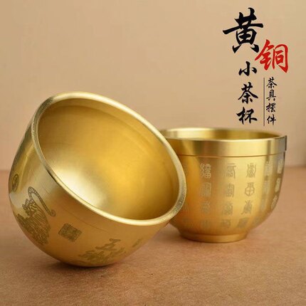 黄铜小酒杯百福菩萨供杯家用供佛酒具黄铜摆件佛前圣水财神供水纯