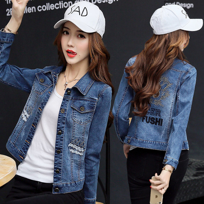 刺绣花朵短款韩版显瘦牛仔夹克