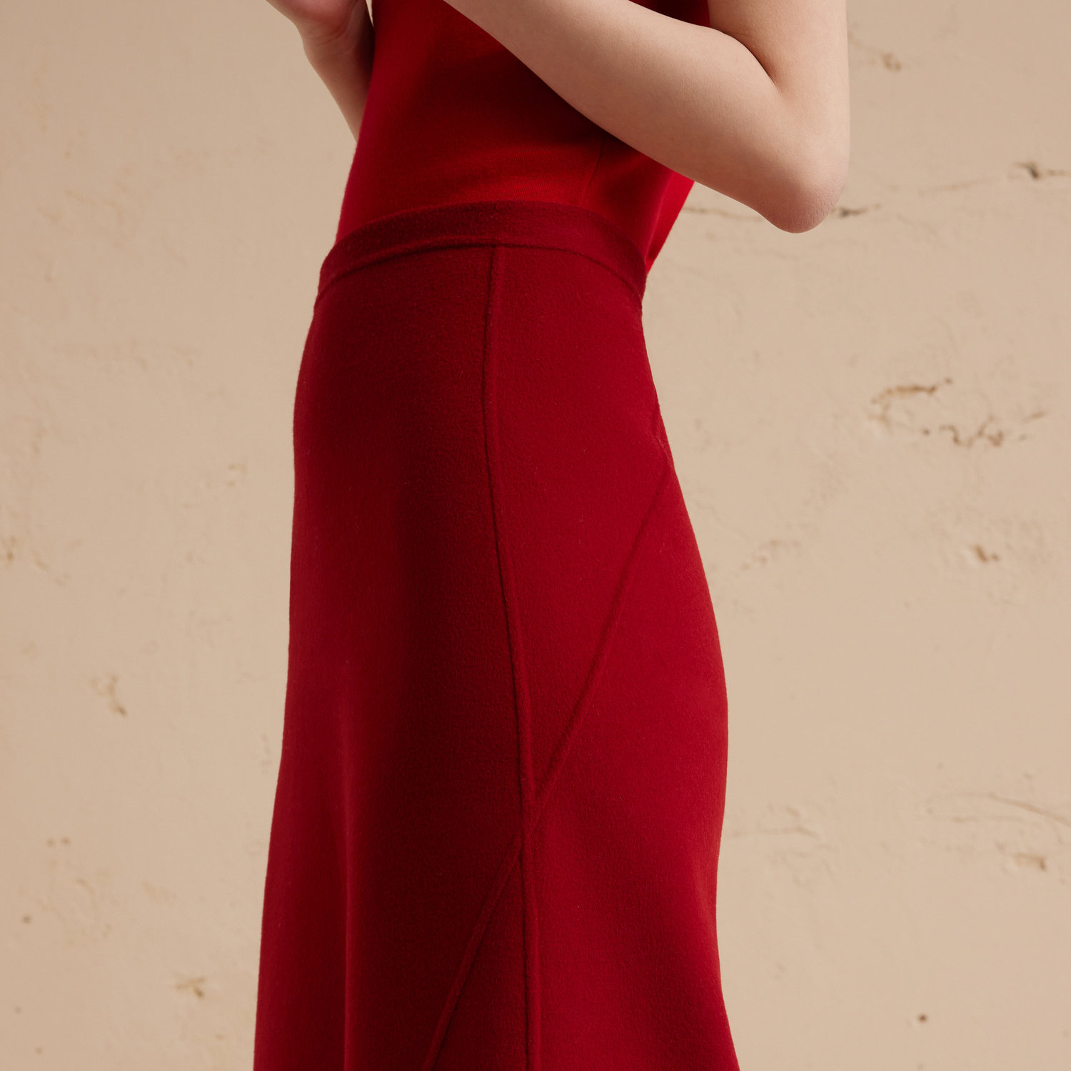 ERDOS红色羊毛羊绒半身裙