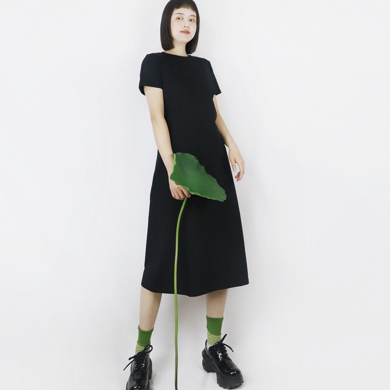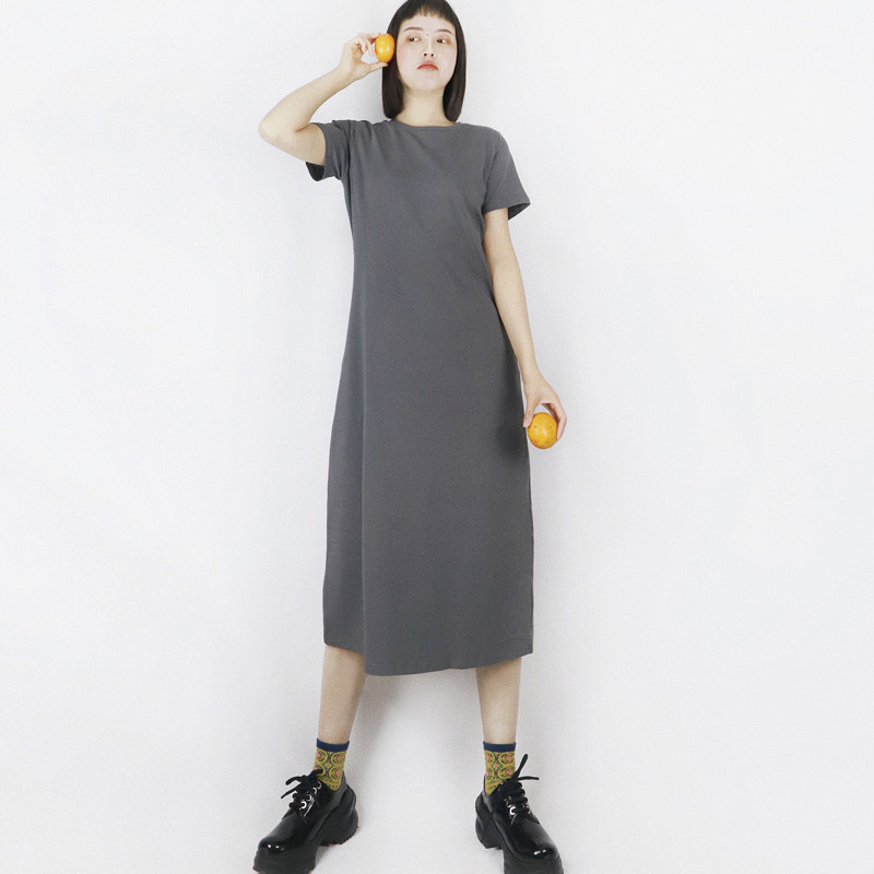 TEATREE自制 宽松短袖长t恤纯棉半袖长裙显瘦文艺休闲T恤连衣裙夏