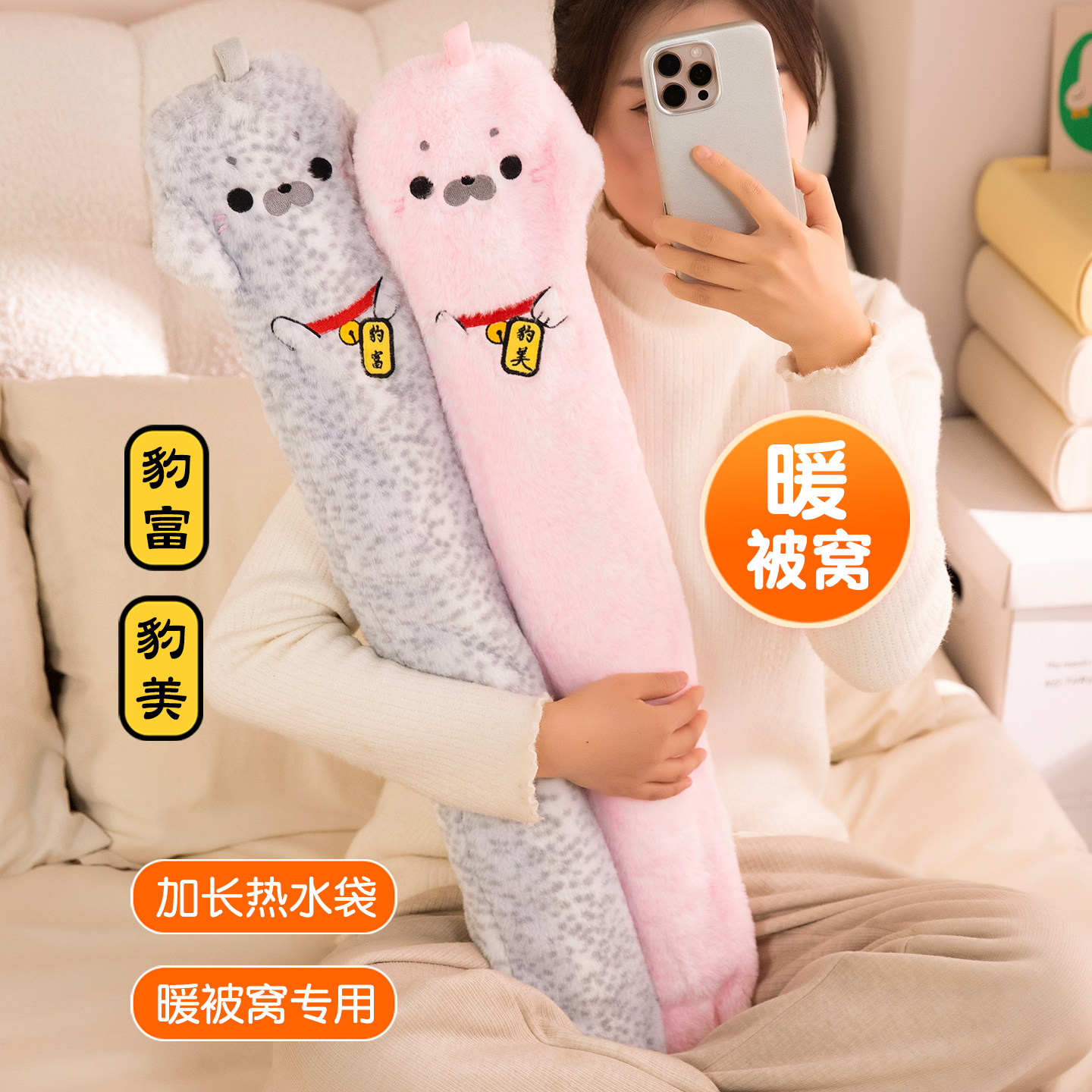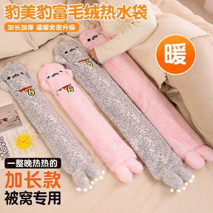冬季新款豹富豹美暖水袋长条抱枕宿舍暖手暖脚加厚加长毛绒抱枕女