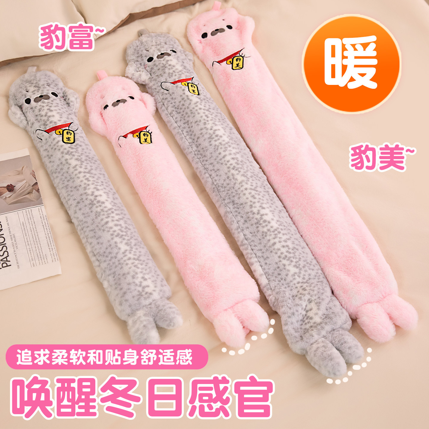 冬季新款豹富豹美暖水袋长条抱枕