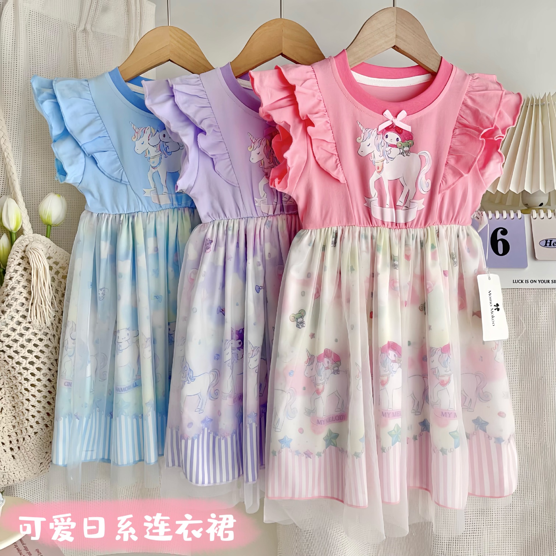 2025夏季女童连衣裙女孩可爱甜美短袖连衣裙长裙公主裙飞袖网纱裙