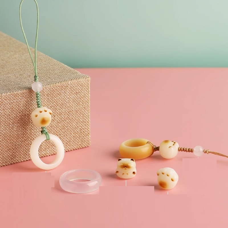 白玉菩提炭烧猫爪手机挂绳可爱小众萌钥匙扣手机链包挂防丢挂件