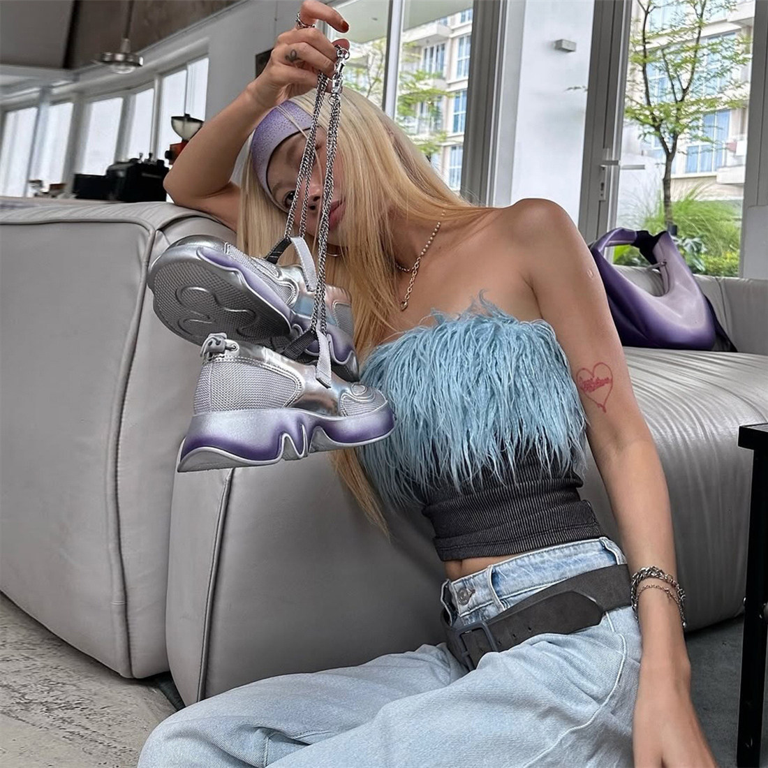 SylCue 千禧辣妹风时尚毛毛拼接显瘦抹胸背心收腰百搭露脐短上衣
