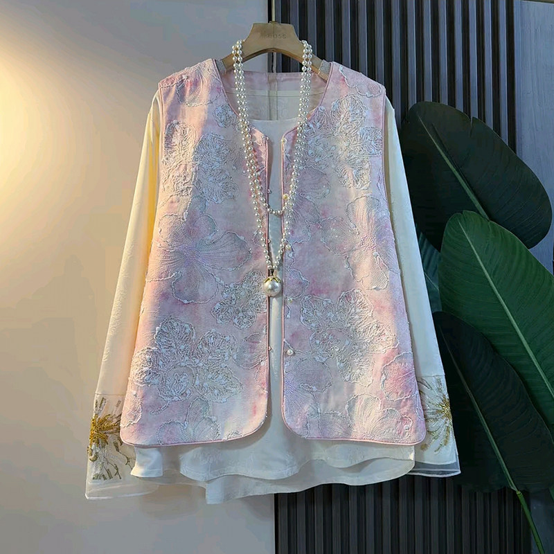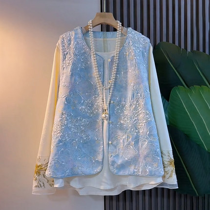 胖妹妹大码女装春季2026新款时尚新中式洋气绣花马甲搭配提花大衫