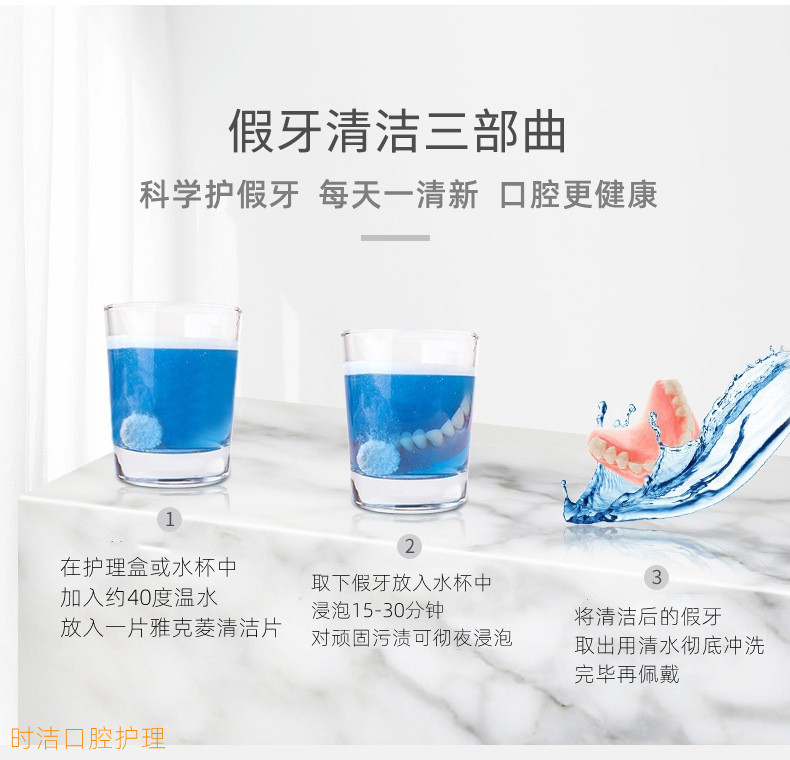 雅克菱洗假牙清洁泡腾片清洗剂消毒神器活动牙义齿泡假牙水洁牙片