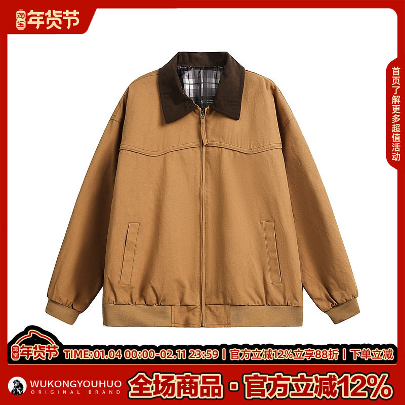 悟空有货复古潮牌cleanfit工装底特律外套男街头宽松百搭翻领夹克