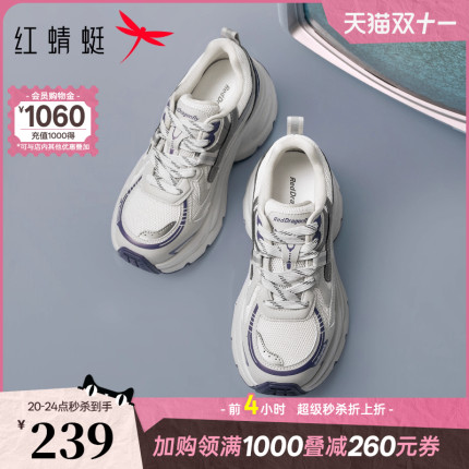 红蜻蜓复古老爹鞋2025秋季新款女鞋小个子厚底增高休闲运动鞋女款