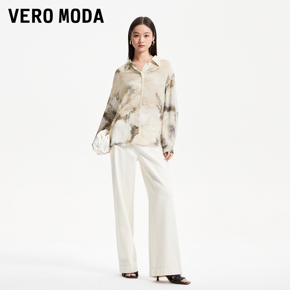 Vero Moda衬衫女夏季宽松尖领上衣水墨印花时尚通勤324205033