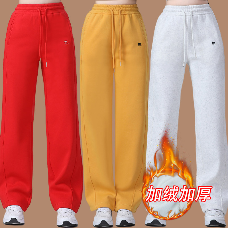 冬加绒加厚曳步舞跳舞阔腿直筒裤
