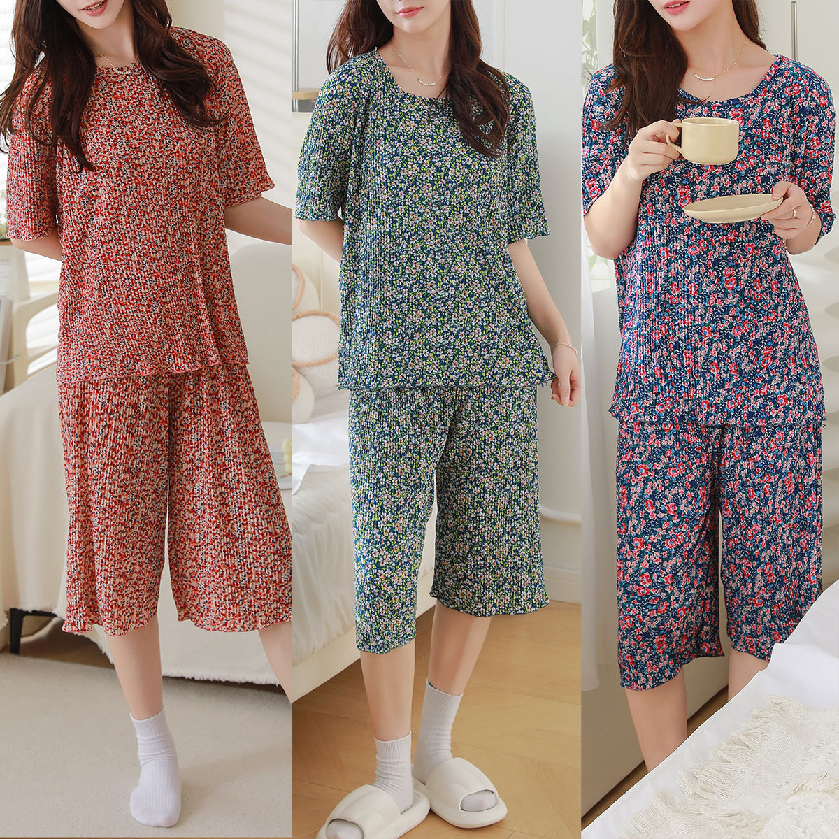 九分冰丝凉凉阔腿裤女夏季2025新款防蚊裤褶皱薄款宽松家居休闲裤