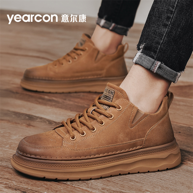 意尔康板鞋男鞋2025新款秋冬季加绒棉休闲皮鞋男士爆款工装马丁靴