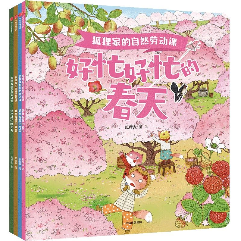 狐狸家的自然劳动课全套4册 好忙好忙的春夏秋冬四季童话故事绘本幼儿园早教启蒙3-6岁儿童睡前亲子共读童话认识季节人与自然 科普