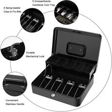 盾牌全钢家用小型收银箱手提收钱带锁收纳证首饰盒超市便利零钱盒