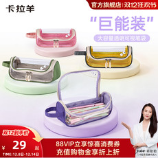卡拉羊考试专用大容量透明笔袋糖果色铅笔盒新款A标面料安全无毒抑菌耐磨初中生女小学生男考研文具盒防水