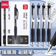 得力中性笔高颜值ins风按动黑笔速干顺滑黑色笔芯刷题笔学生考试专用0.5子弹头笔碳素圆珠笔初中生文具签字笔
