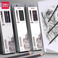 得力素描铅笔绘画美术生用2h6b炭笔初学者速写hb素描笔软中硬绘图美术生专用2B素描工具套装4b铅笔素描碳笔