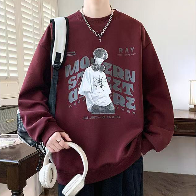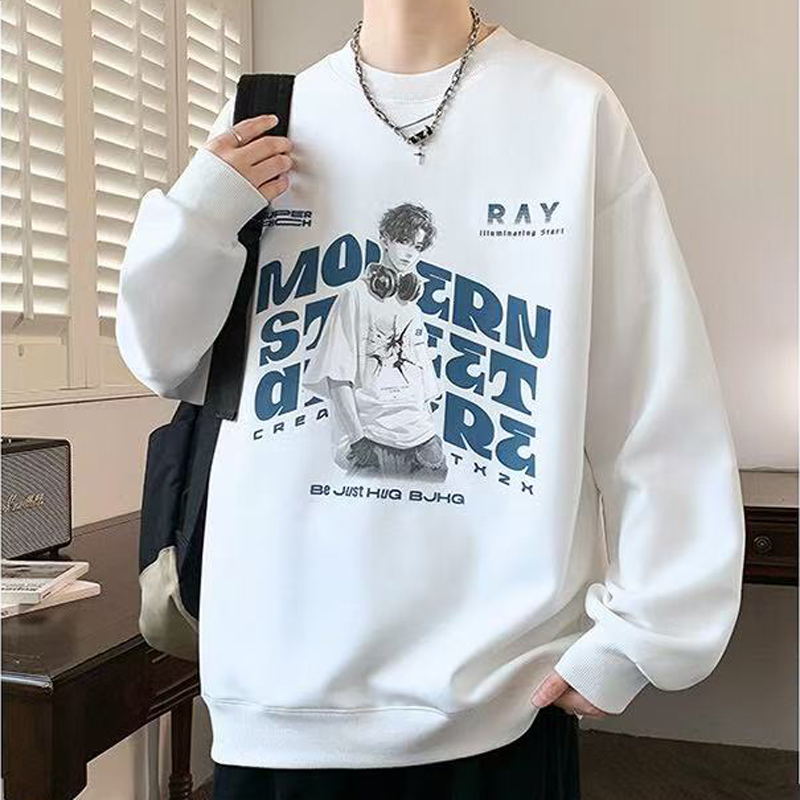 纯棉秋冬加绒圆领卫衣男潮牌卡通