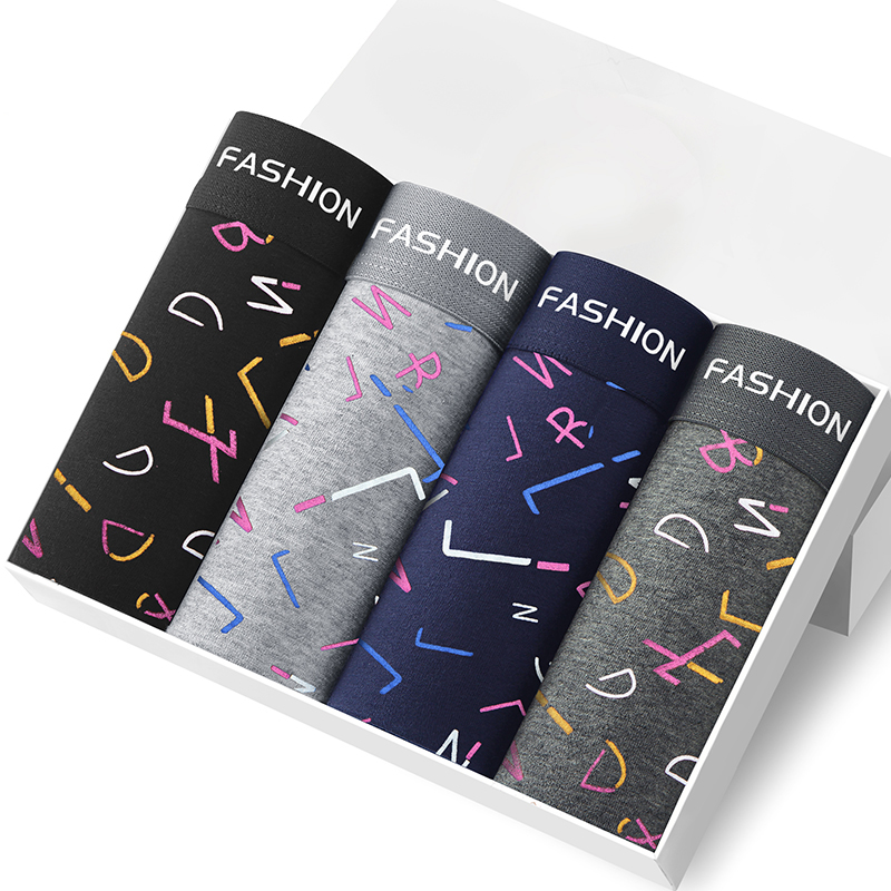 纯棉男士内裤男平角裤透气无痕抗菌四角裤运动男生潮流中腰短裤头
