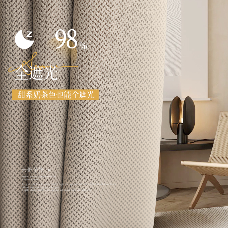 雪尼尔窗帘法式遮光布2024新款奶茶色卧室客厅高级感轻奢现代简约