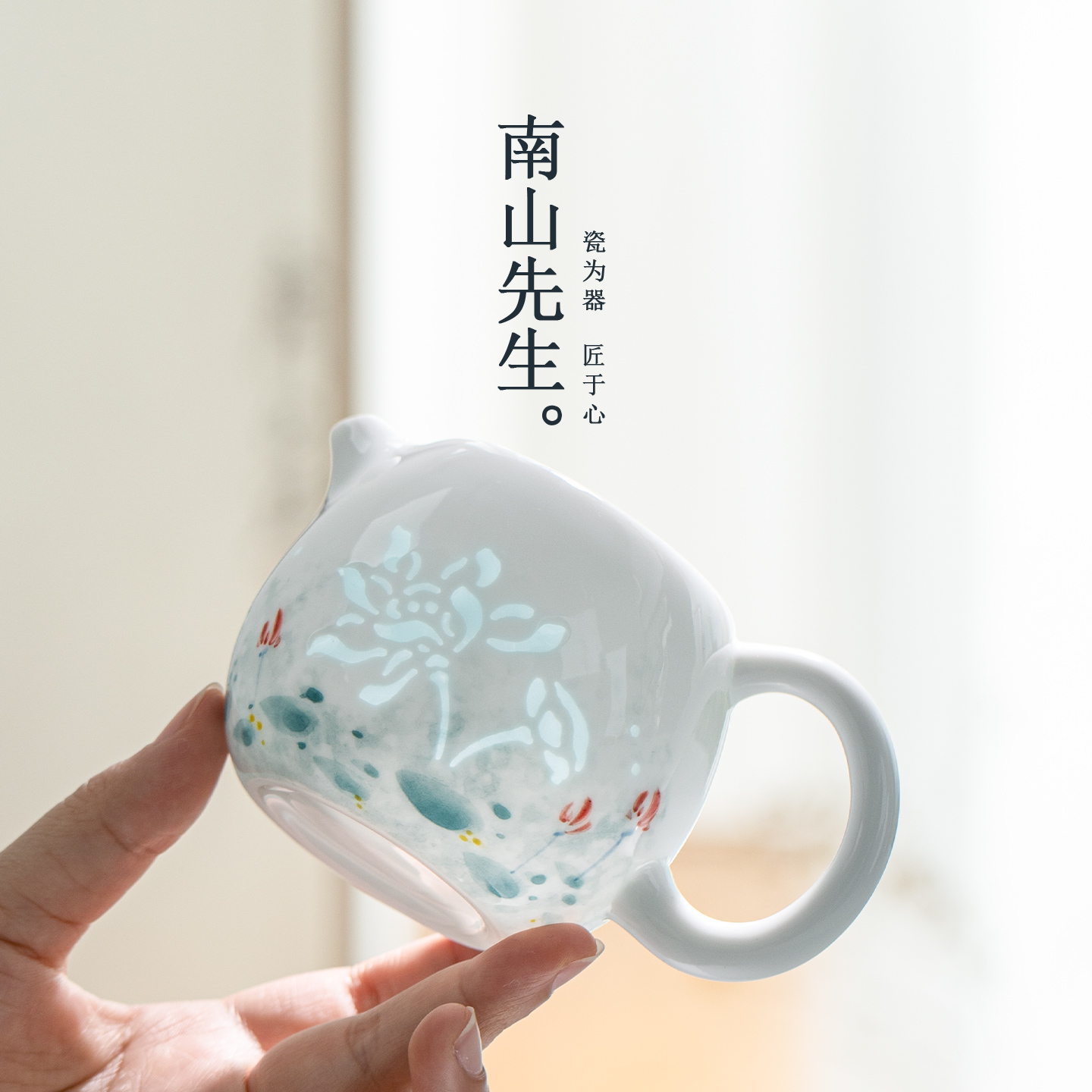 南山先生手绘玉荷龙蛋壶陶瓷单壶玲珑泡茶壶家用泡茶器高档送礼