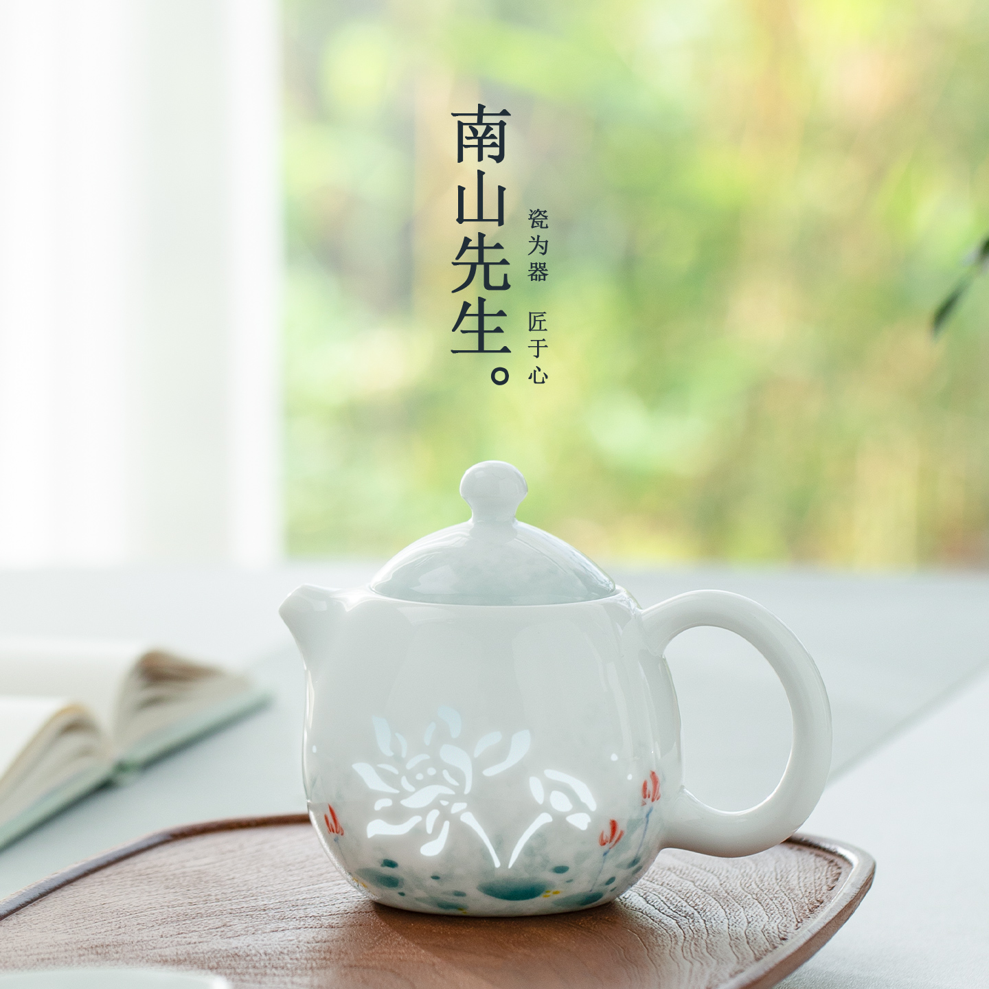 南山先生陶瓷手绘玉荷龙蛋壶单壶