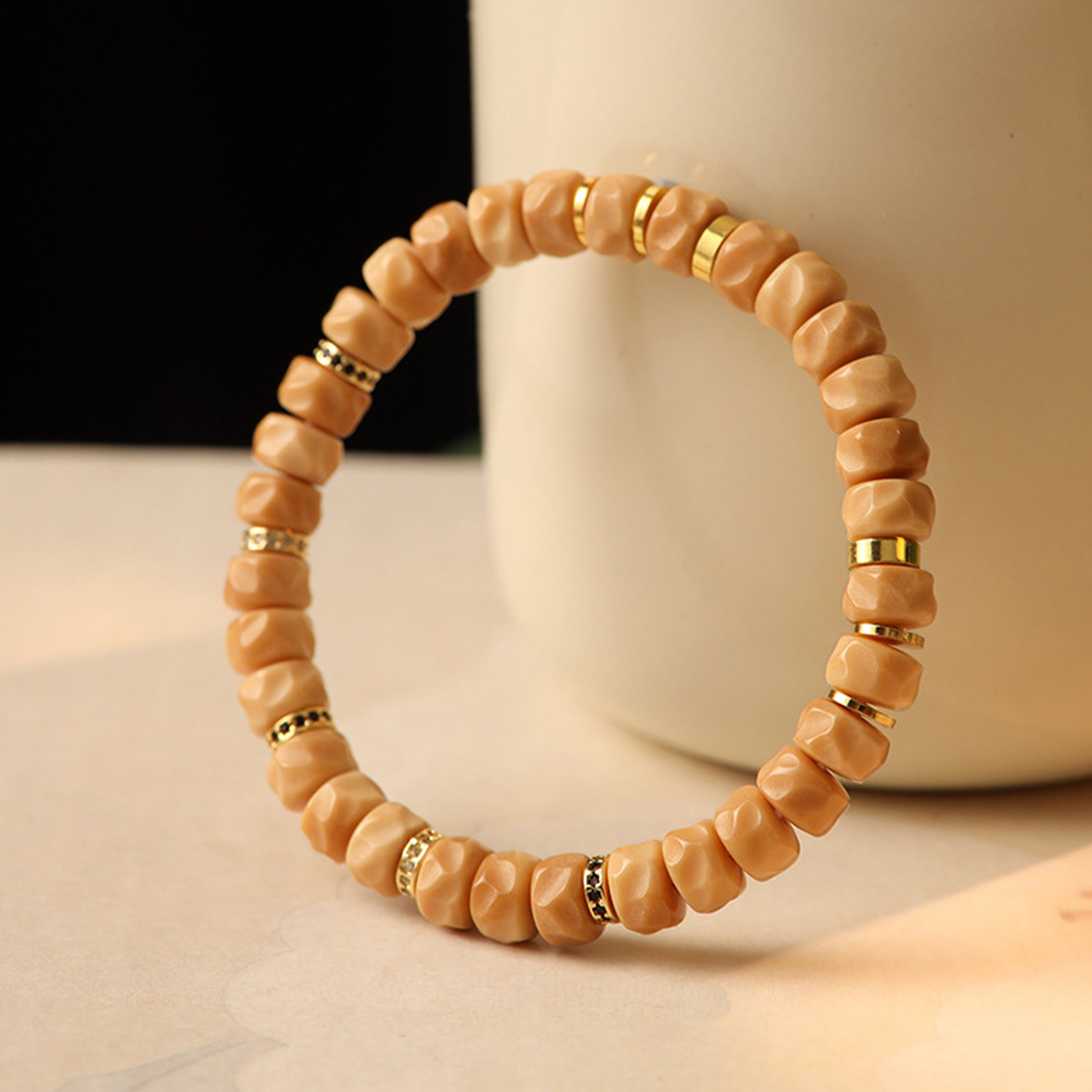 天然风化白玉菩提手串新中式菩提子绿松石转运木质佛珠菩提根手链