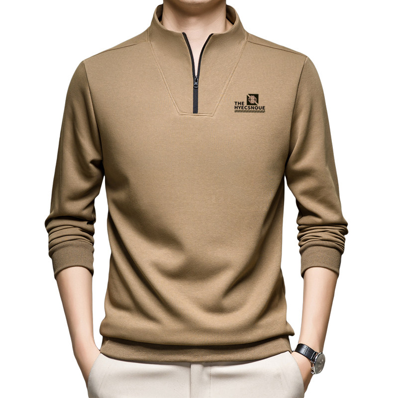 啄木鸟长袖t恤男士半高领拉链立领秋季薄款卫衣男宽松休闲打底衫