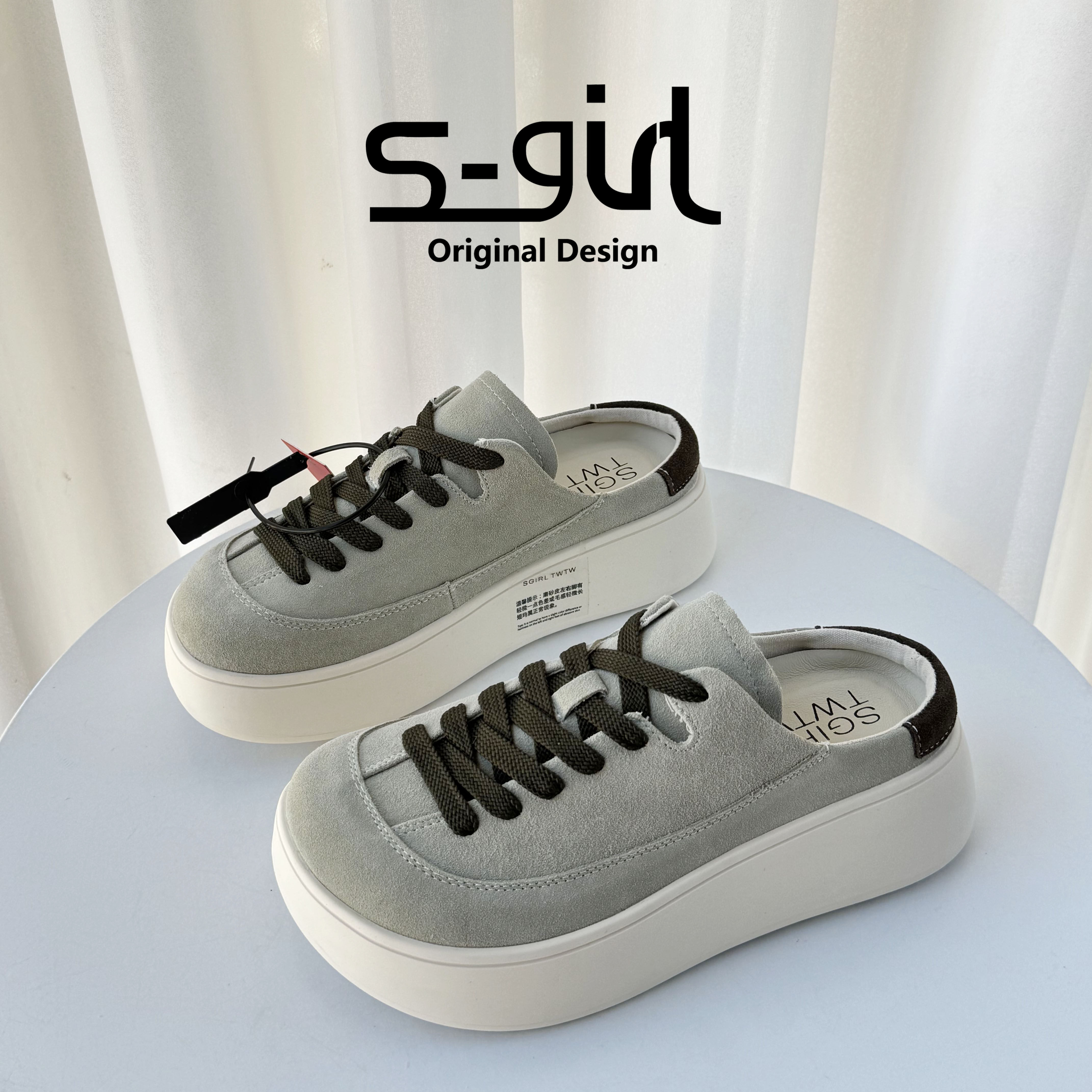 SGIRL TWTW大头懒人半包拖鞋女2026新款百搭休闲板鞋丑萌小白鞋潮