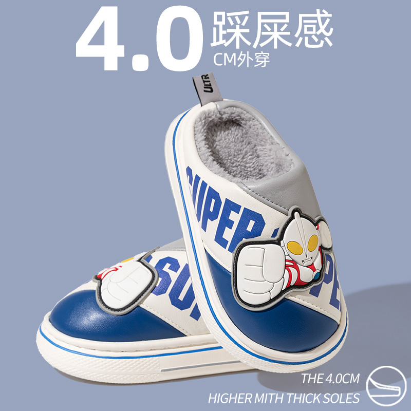十一步奥特曼儿童棉拖鞋男童2025新款秋冬季室内家居宝宝保暖棉鞋