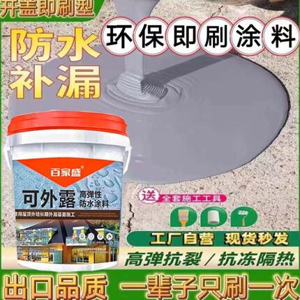 屋顶专用防水涂料蓝色鱼池房顶内外墙裂缝补漏自刷型强效防水胶