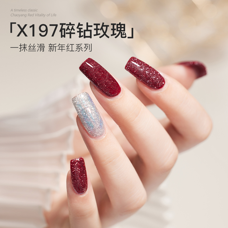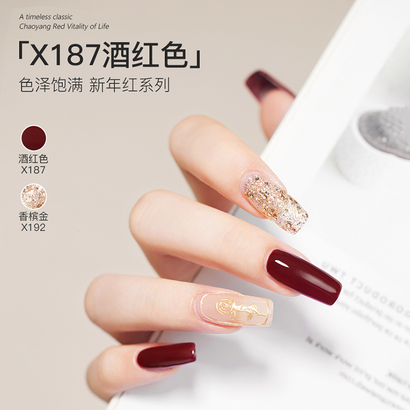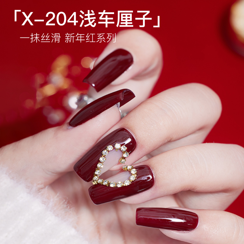 酒红色指甲油胶2025年新款车厘子流行新年红猫眼光疗胶美甲店专用
