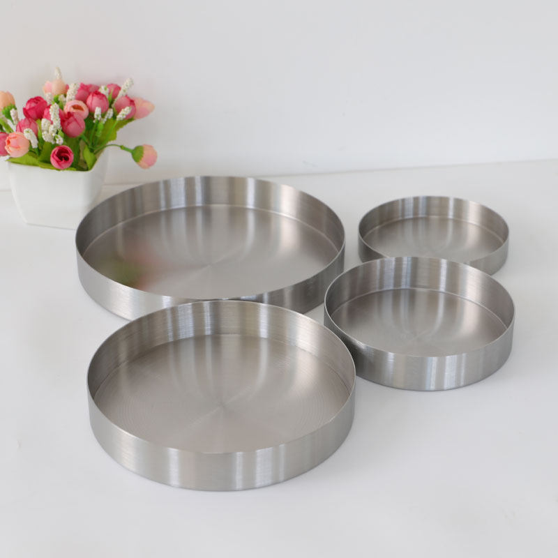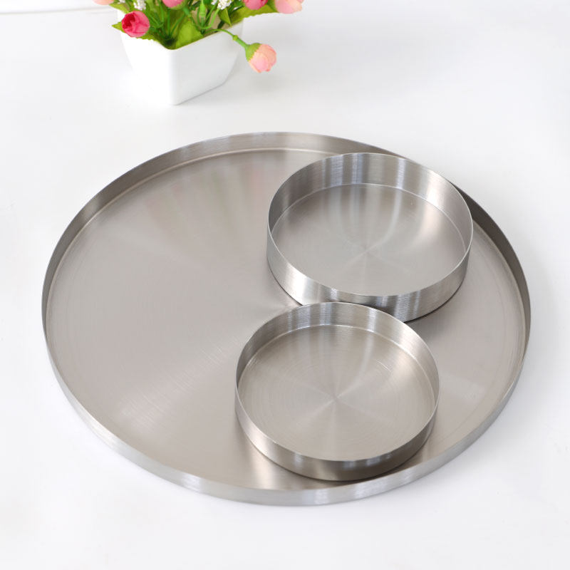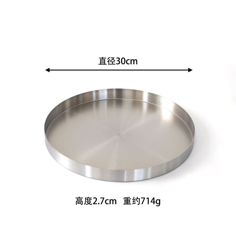 北欧不锈钢原色圆盘金属银色托盘收纳盘摆件饰品盘圆形平盘水果盘