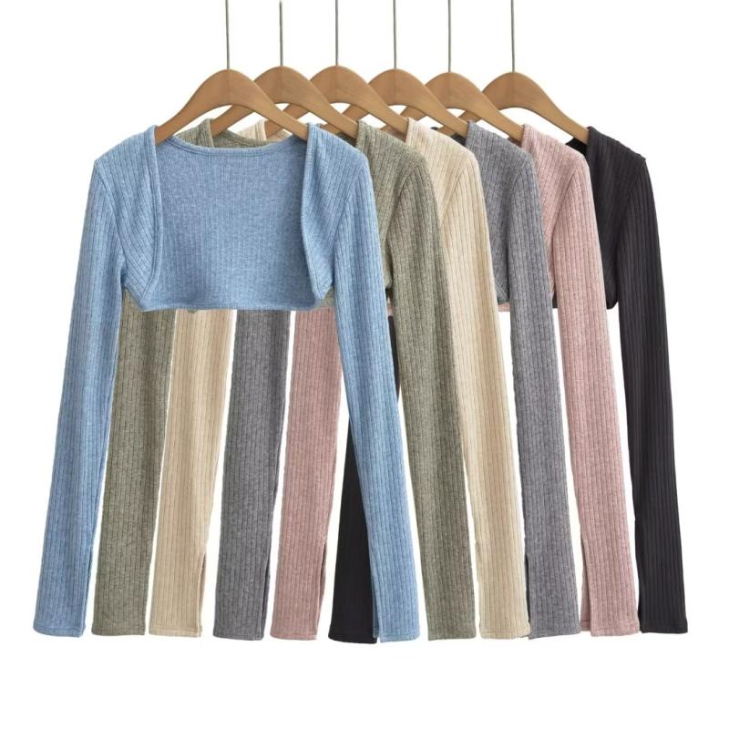 ins法式露腰半截式短款针织