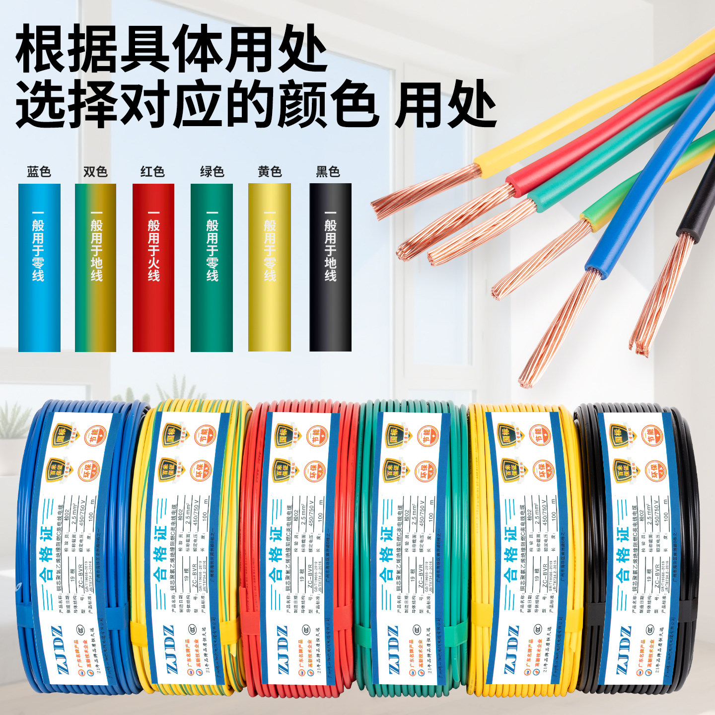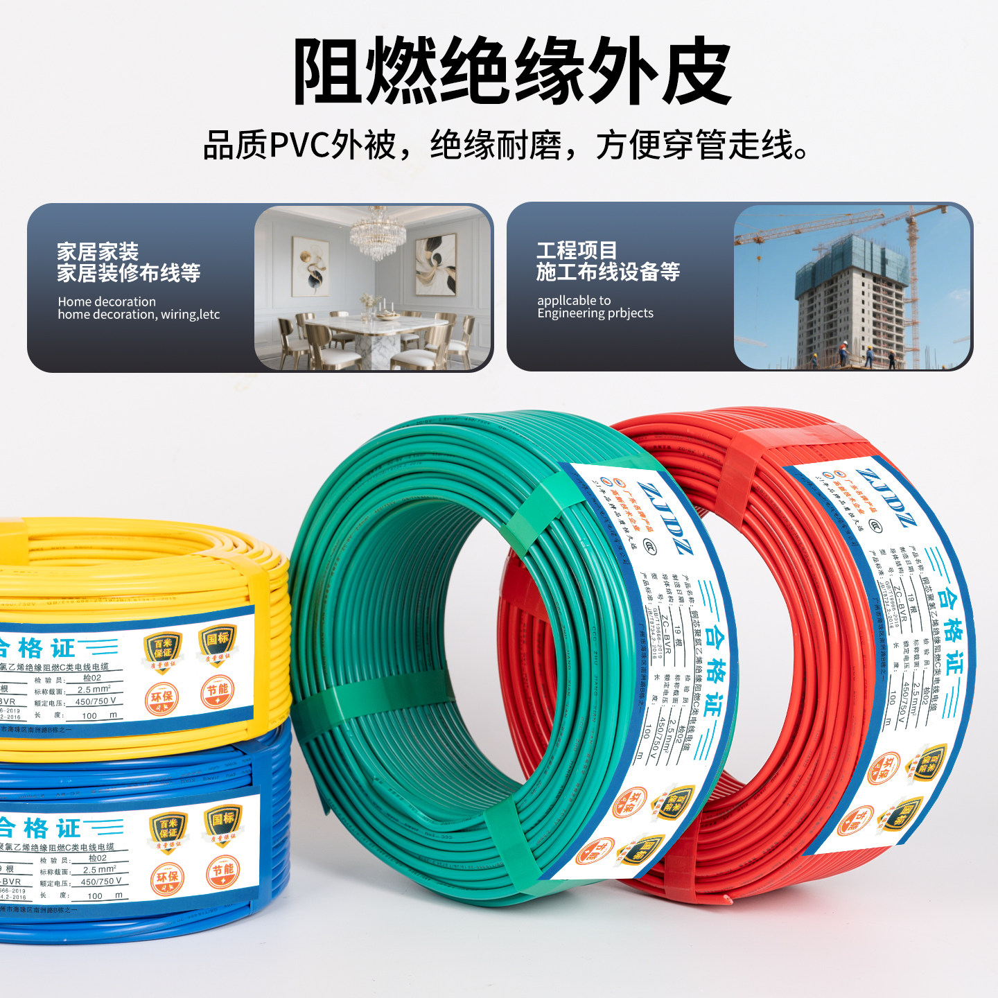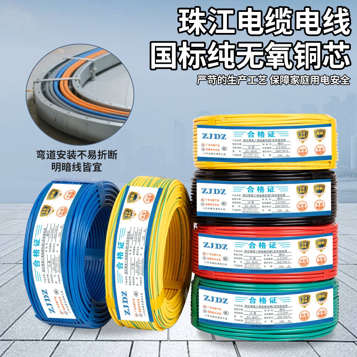 珠江电线纯铜国标6平方铜芯电线家装电线1.5BVR2.5 4多股阻燃家用