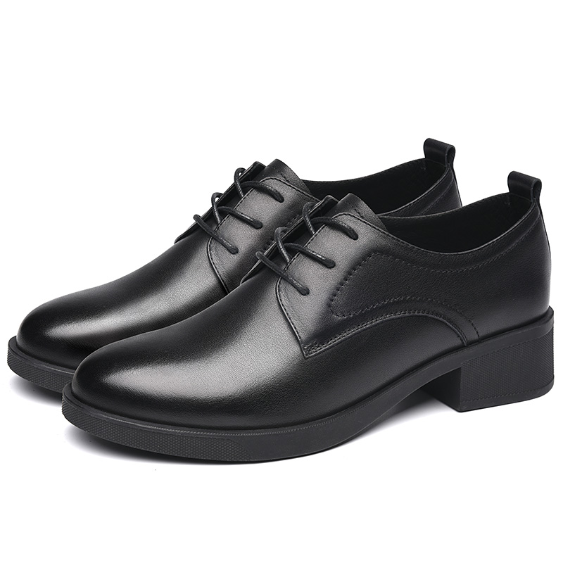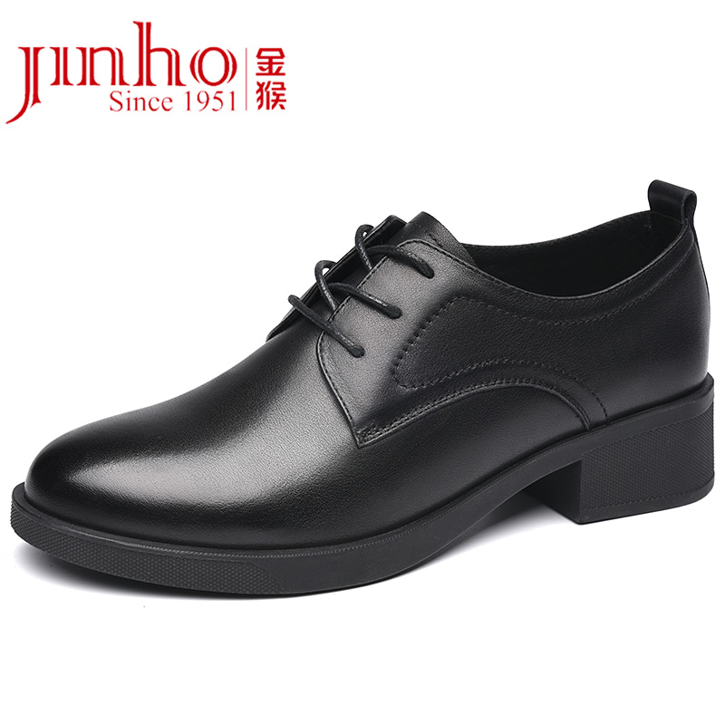 金猴女单鞋春款通勤鞋圆头中跟粗跟真皮办公职业女皮鞋工作鞋