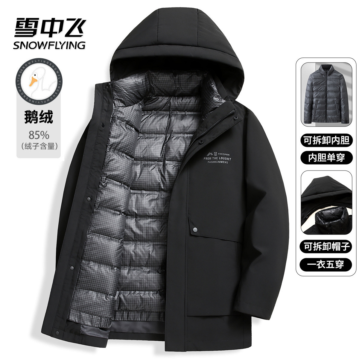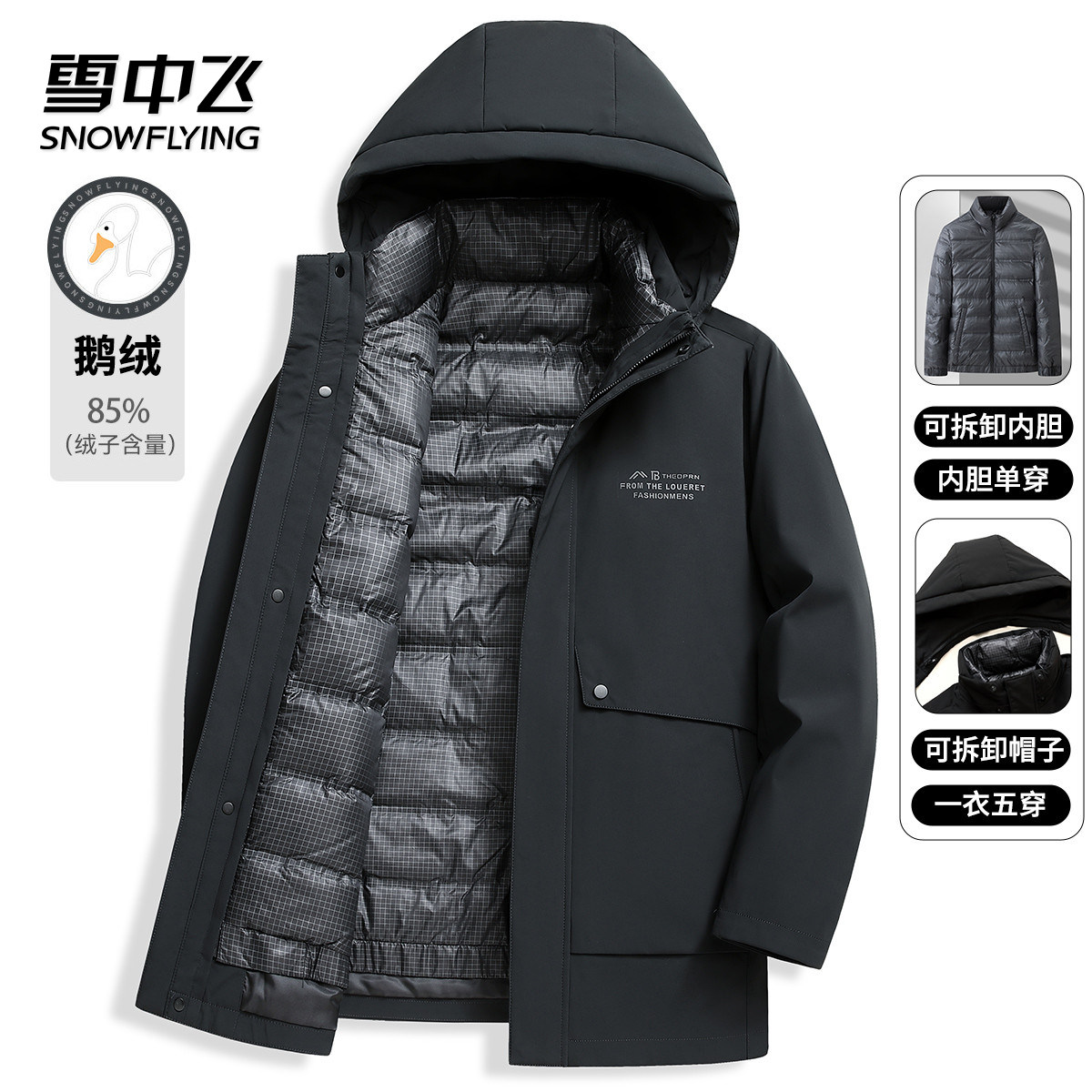 SNOW FLYING/雪中飞【鹅绒&帽子内胆可脱卸】中长款男士羽绒服