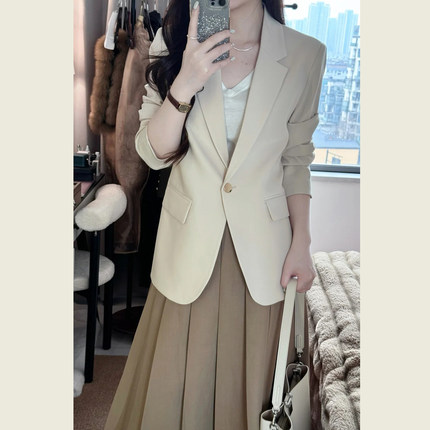 商务轻熟风杏色西装外套女春秋季单排扣高级感干练百搭气质西服
