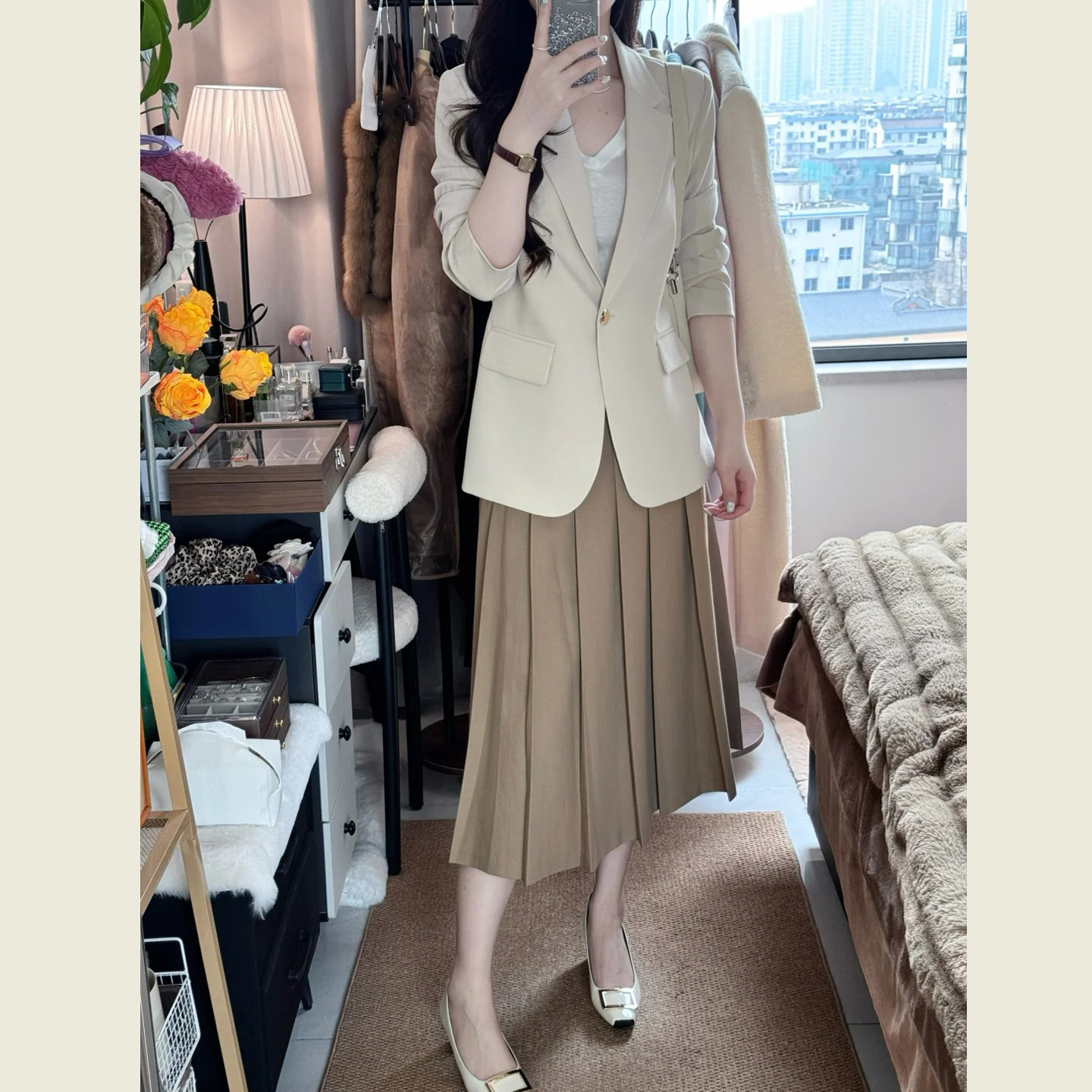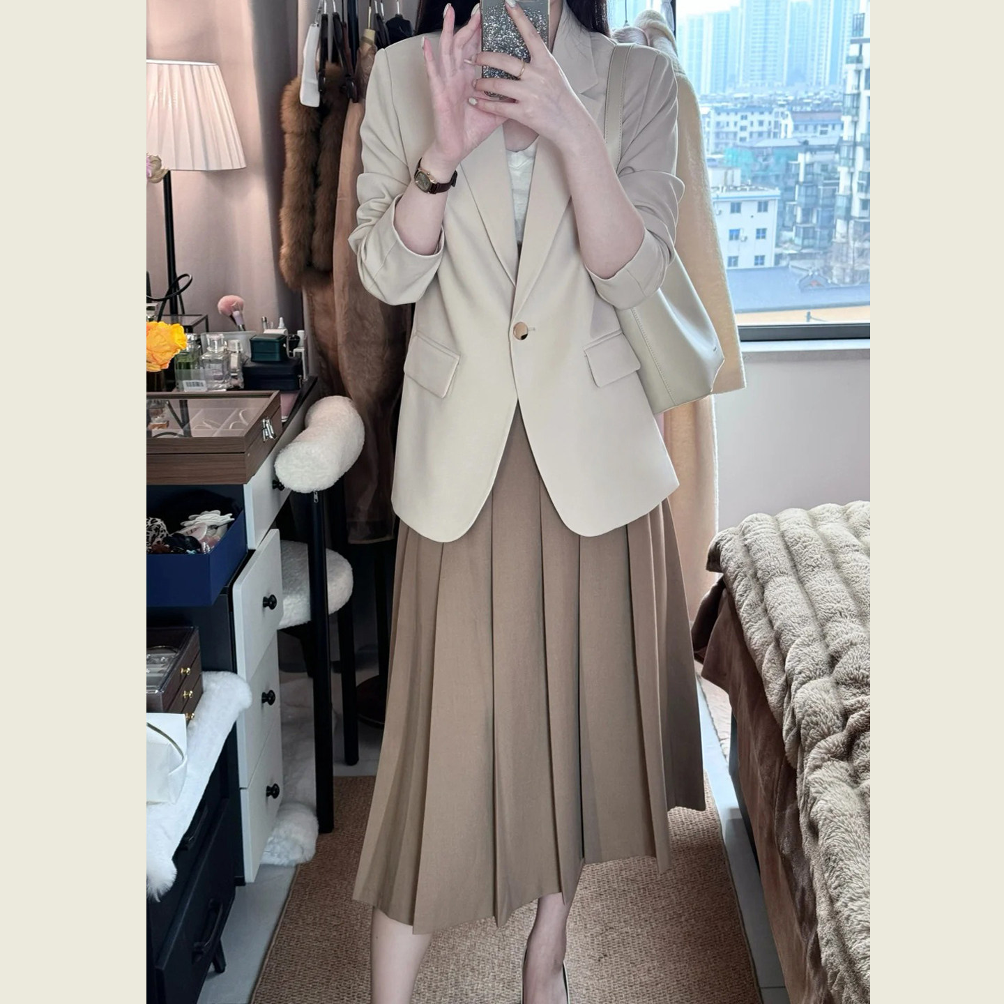 商务轻熟风杏色西装外套