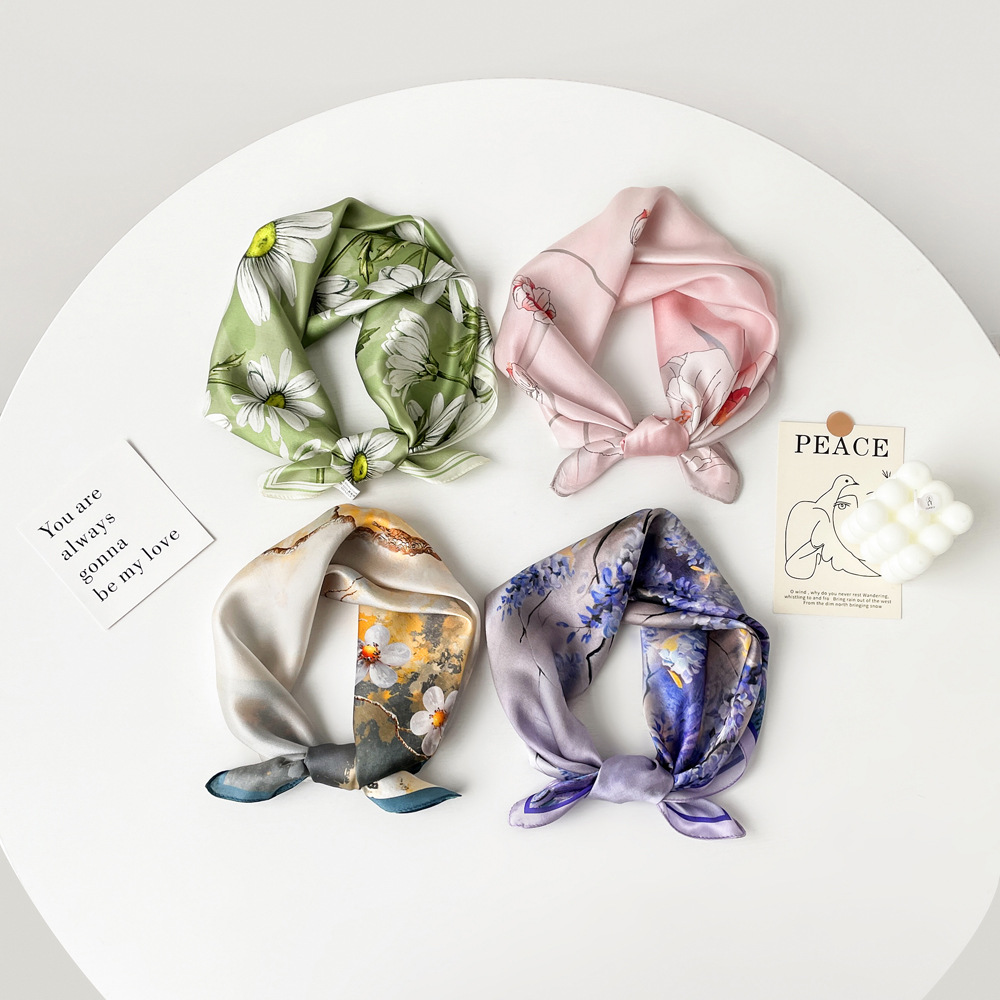 日本品质真丝小方巾丝巾女士国风印花围巾桑蚕丝丝绸围脖素绉缎丝
