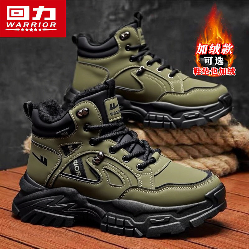 回力高帮男鞋冬季加绒二棉鞋户外登山运动休闲防滑耐磨黑色马丁靴