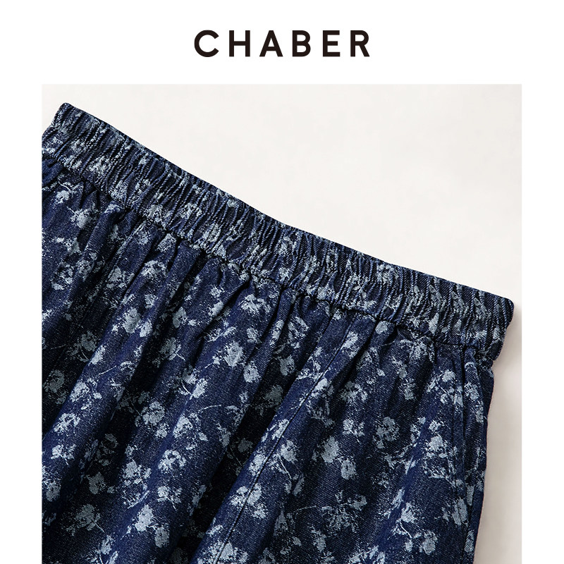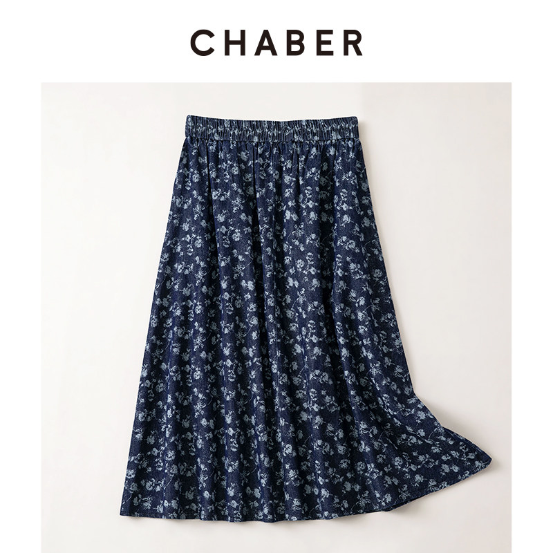 chaber巧帛春季新款复古碎花纯棉A字裙气质百搭优雅半身裙牛仔裙