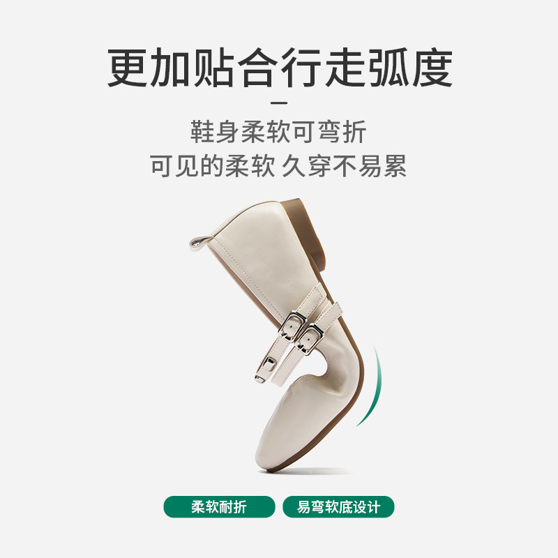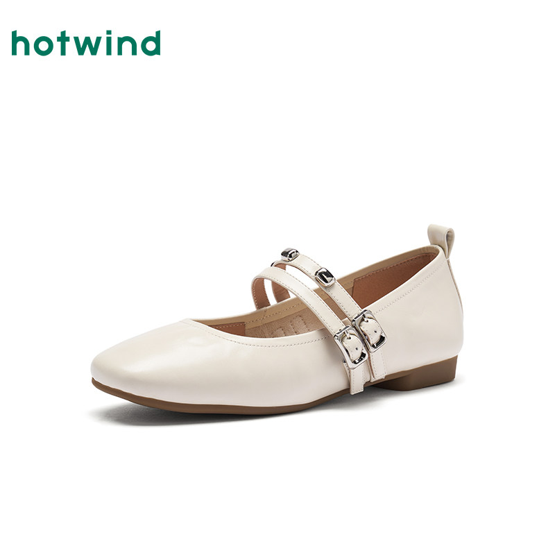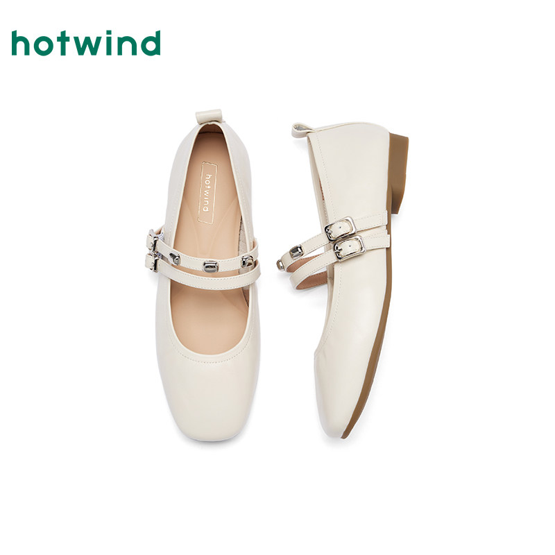 热风浅口单鞋女2026年春季新款一字带配裙子女鞋平底百搭休闲鞋子