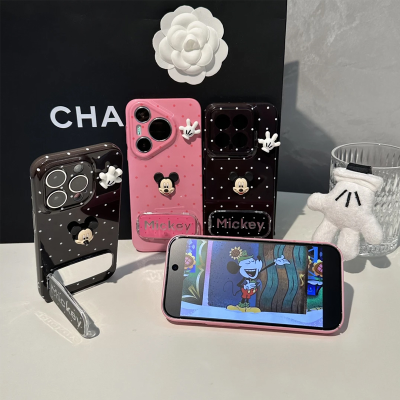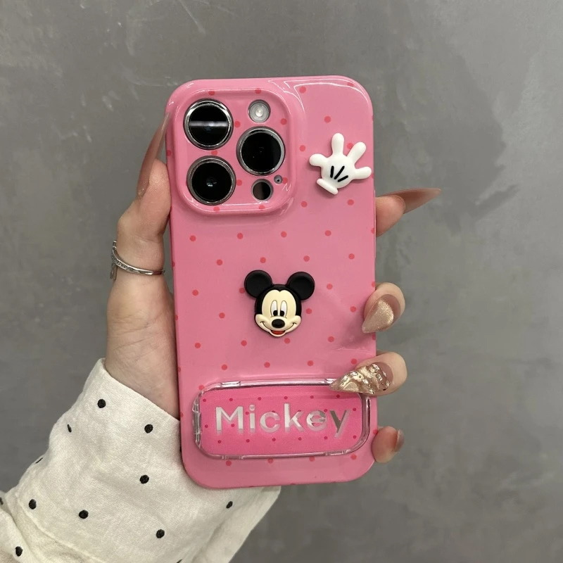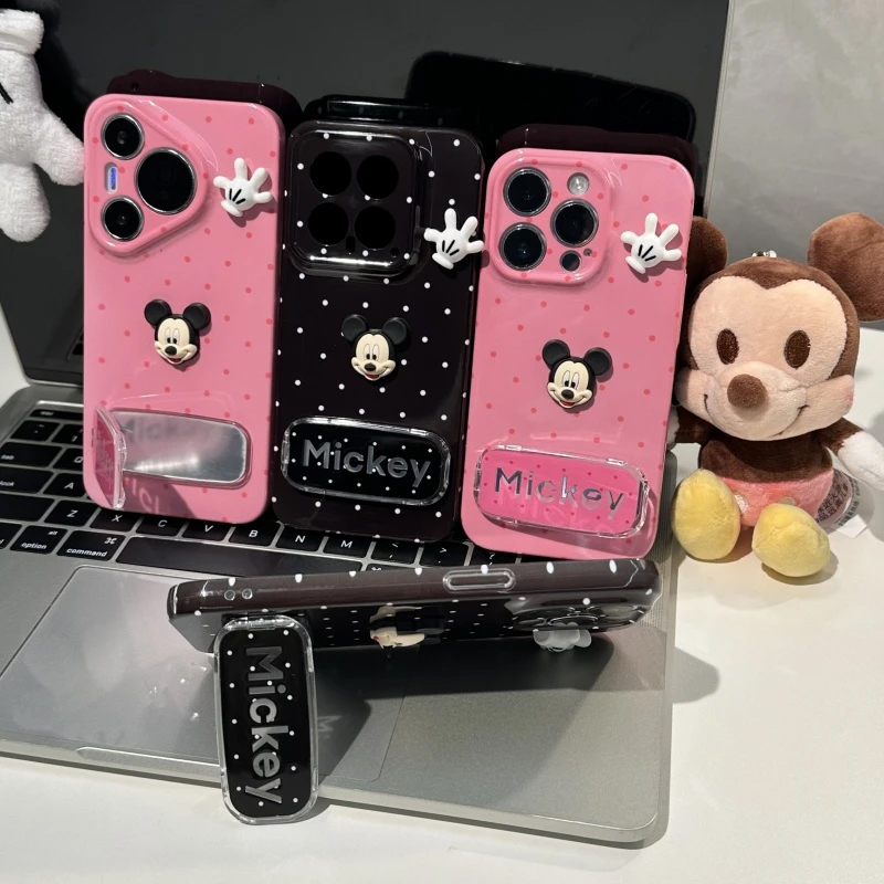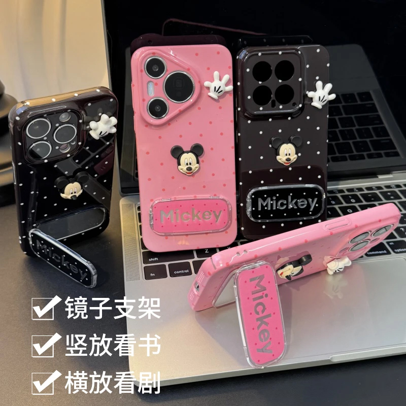 情侣米奇公仔支架新款苹果16pro手机壳iPhone15max11小米14华为mate60k80pura70荣耀300vivox200nova13iqoo12