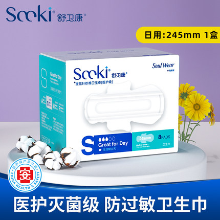 药房国货Sccki舒卫康医护级防过敏卫生巾纯棉不含绒毛浆日用245mm