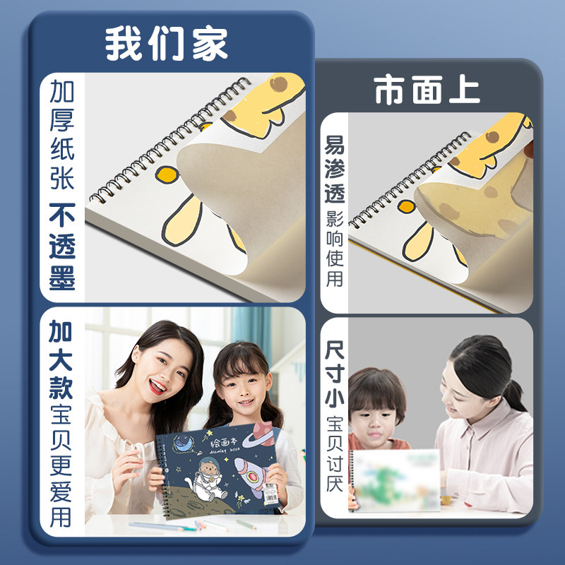 8k图画本绘画本小学生专用a4幼儿园一年级儿童画画本加厚美术本空白马克笔专用本子不透色线圈素描本速写本子