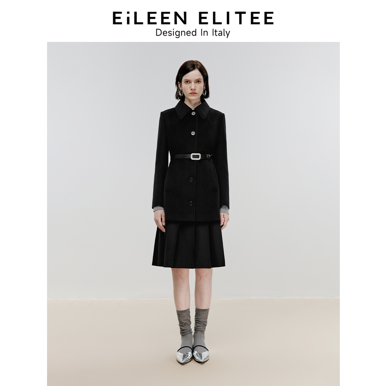 朗姿欧洲EiLEEN ELITEE纯羊毛高级感中长款毛呢外套女2024冬新款