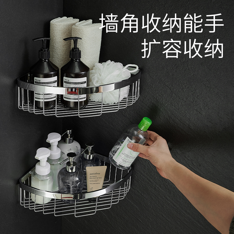 304不锈钢三角篮卫生间置物架淋浴房转角浴室壁挂免钉收纳洗漱架
