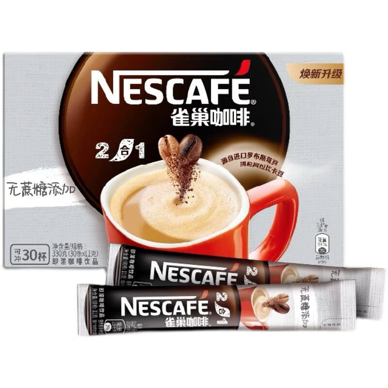 雀巢无糖配方二合一咖啡30条盒装